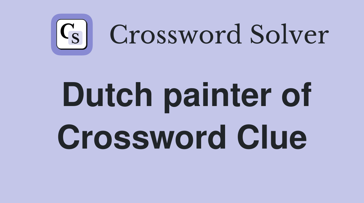 20th century Dutch artist Crossword Clue Answers Crossword Solver