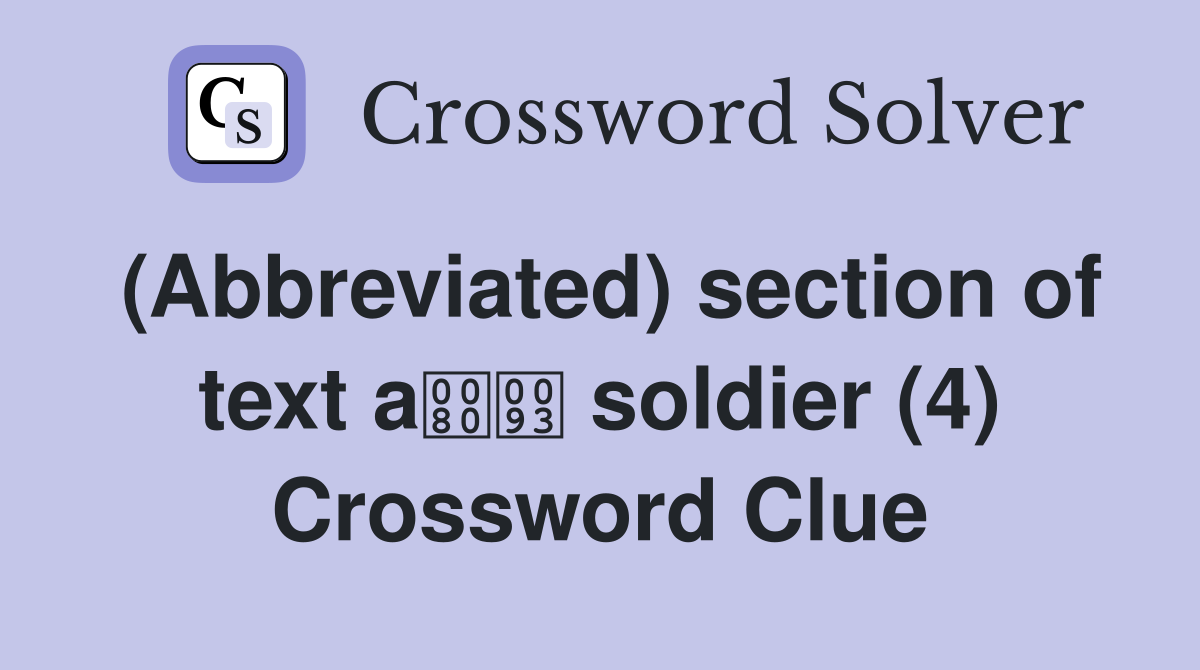 (Abbreviated) section of text a soldier (4) Crossword Clue Answers