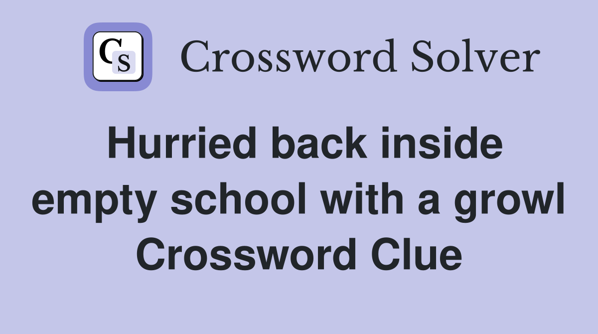 Hurried back inside empty school with a growl Crossword Clue Answers