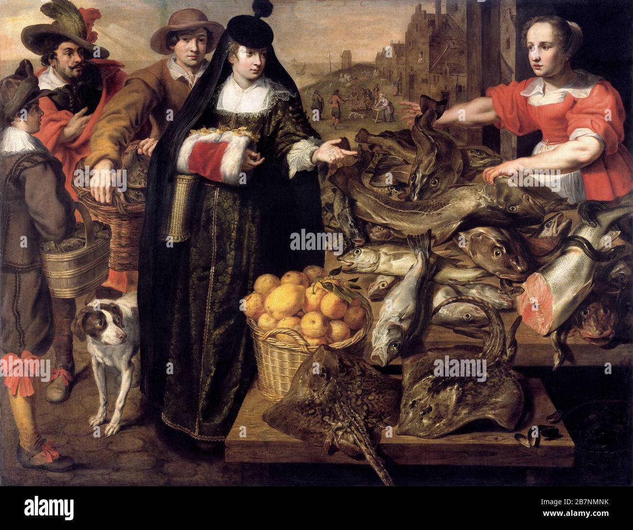 A lady at the fish market in Antwerp 1630 1640 Found in the