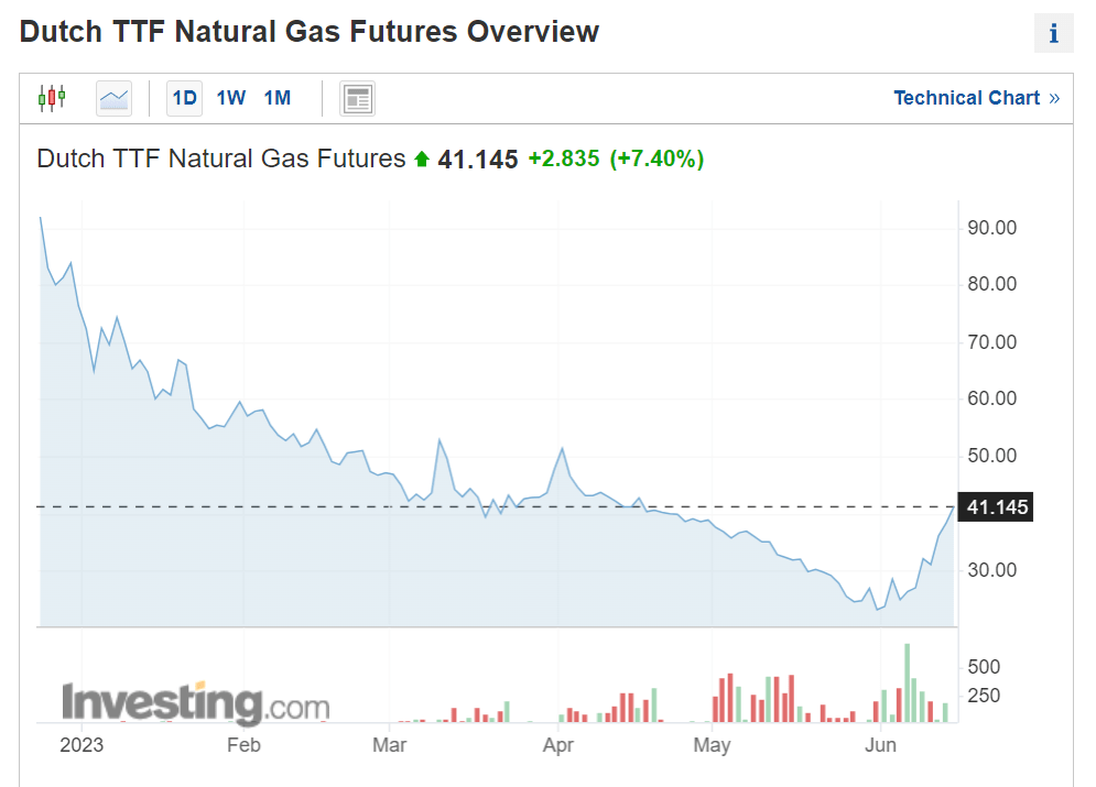 Dutch TTF natural gas prices have fallen to the lowest level in 6
