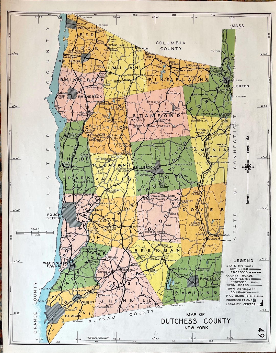 Dutchess County Map Original 1941 State of New York Atlas Fishkill