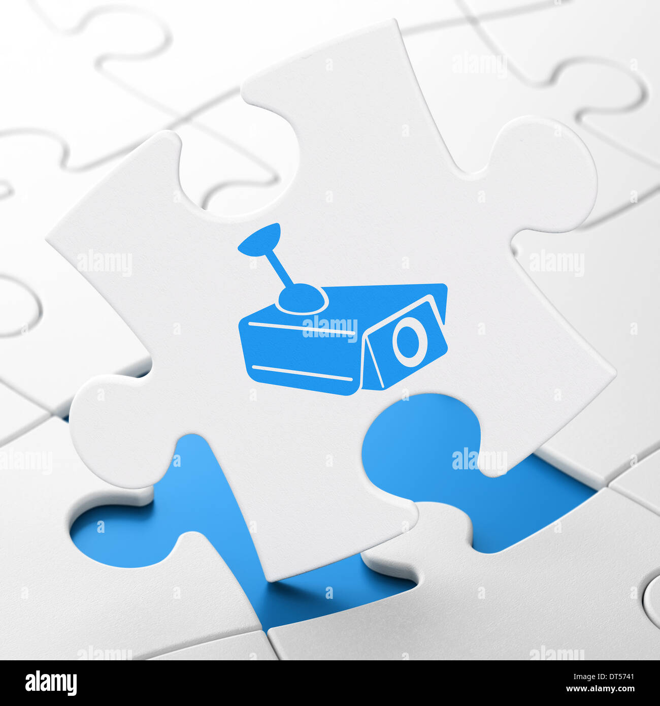 Security concept: Cctv Camera on puzzle background Stock Photo Alamy