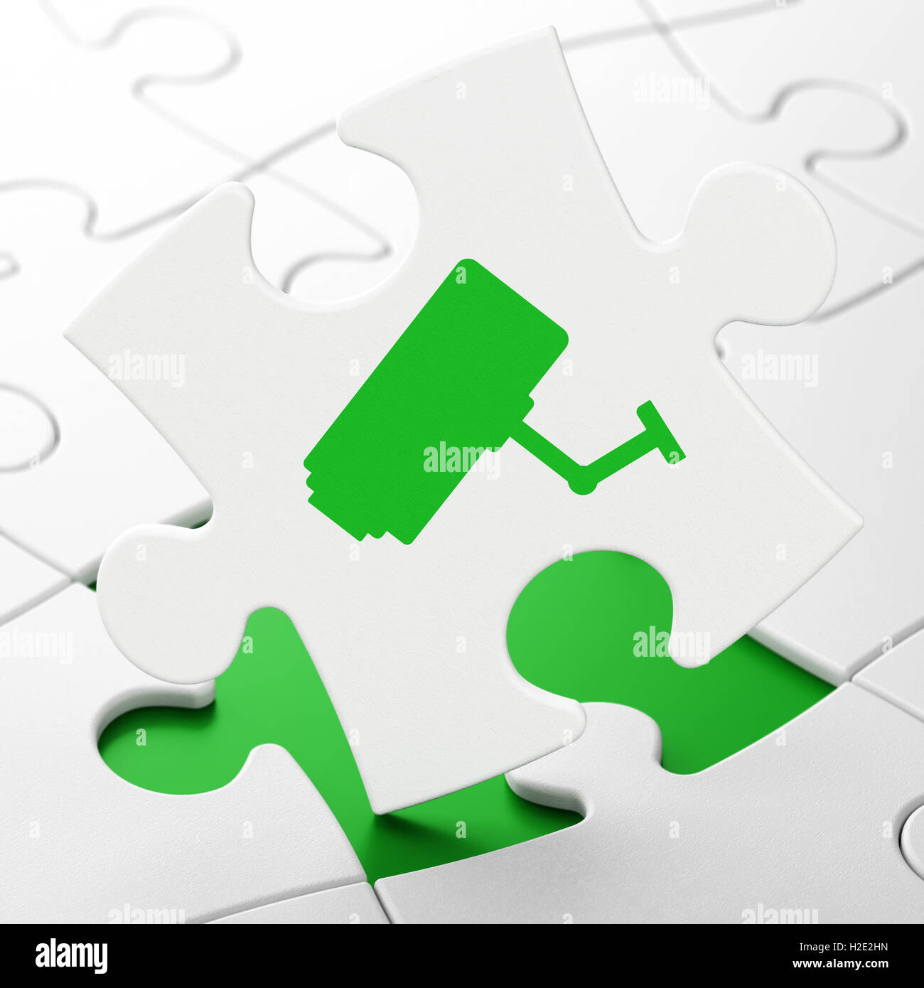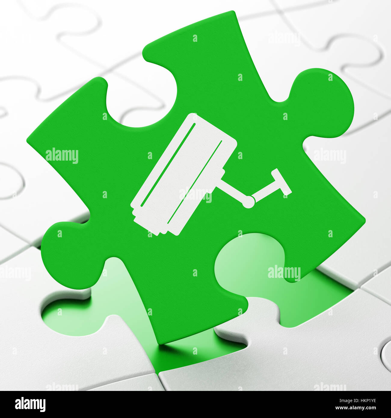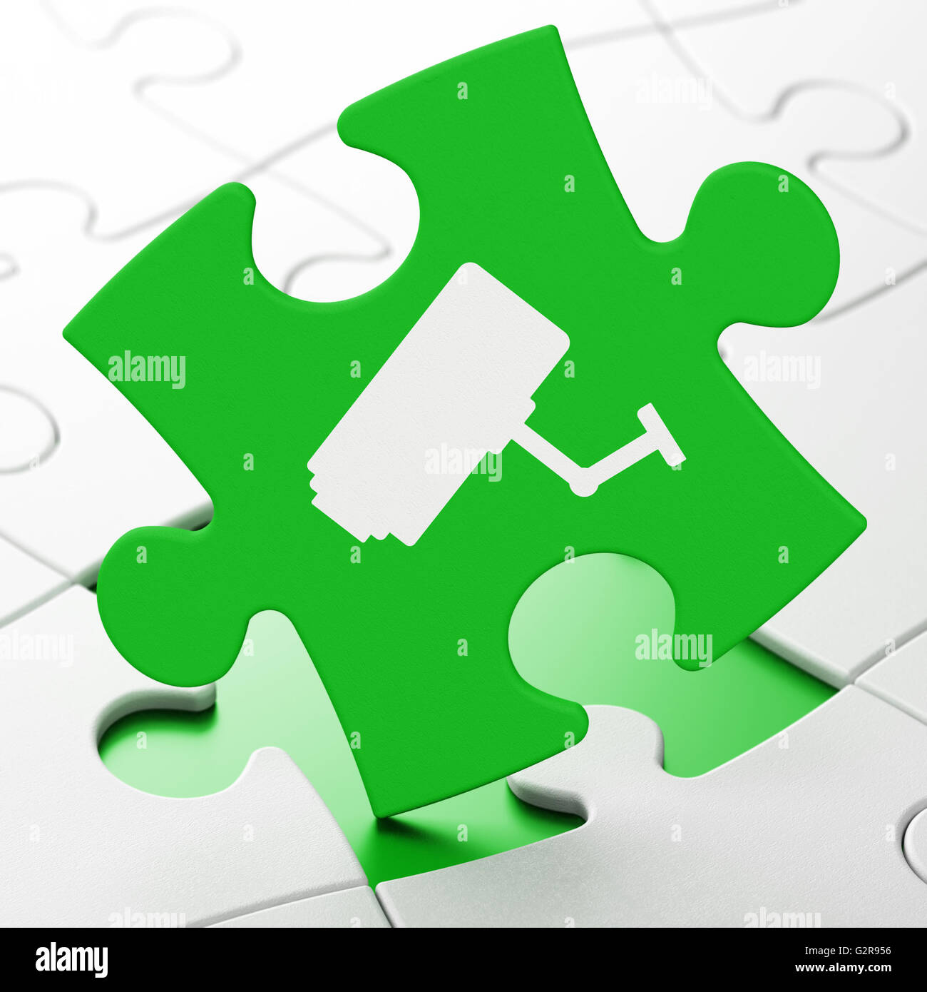 Protection concept: Cctv Camera on puzzle background Stock Photo Alamy