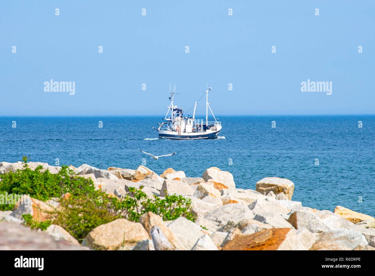 Baltic Sea With Trawler And Seagull Stock Photo Alamy