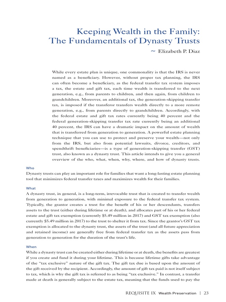 Dynasty Trusts Preserving Family Assets PDF Trust Law Taxes