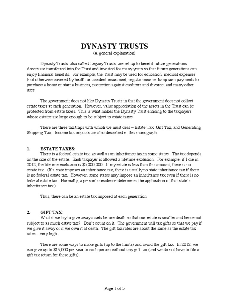 Here are some of the images for Dynasty Trust Template that we found in our website database.