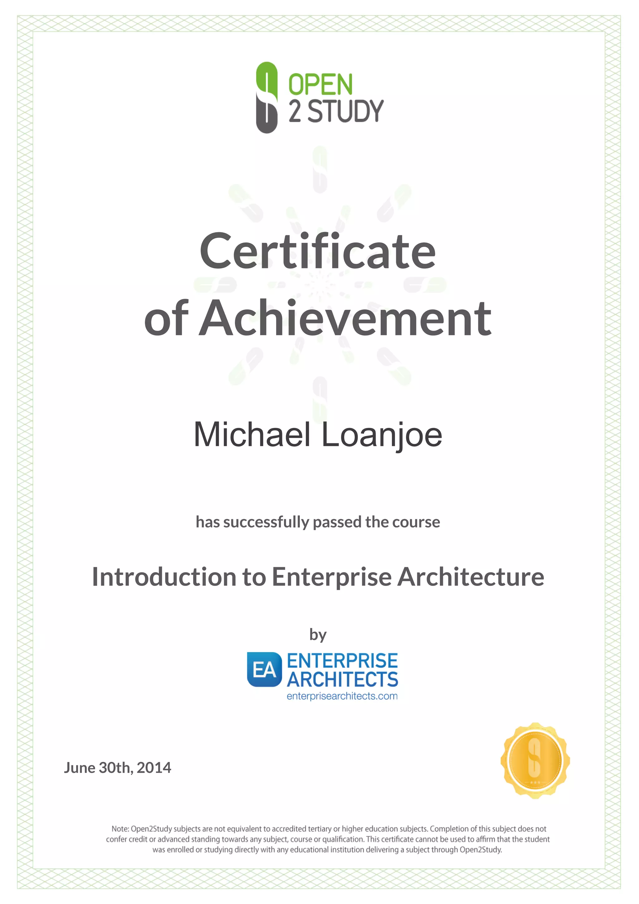 Certificate Introduction of Enterprise Architecture TOGAF PDF