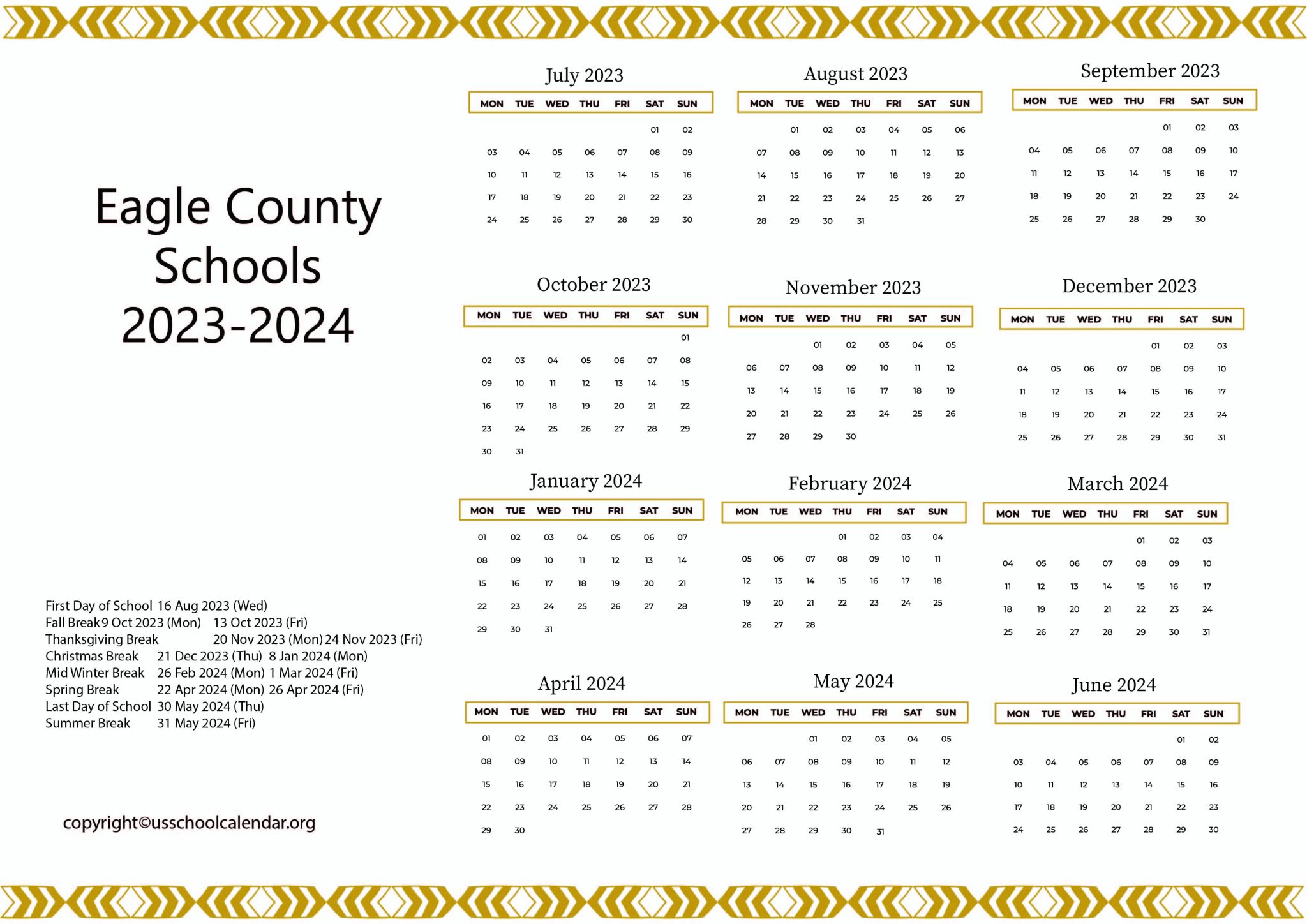 Eagle County Schools Calendar 2024 2025 in PDF Holidays