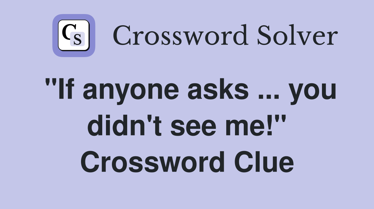 quot If anyone asks you didn #39 t see me quot Crossword Clue Answers