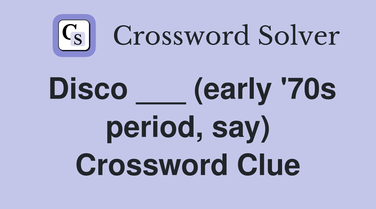 Disco (early #39 70s period say) Crossword Clue Answers Crossword