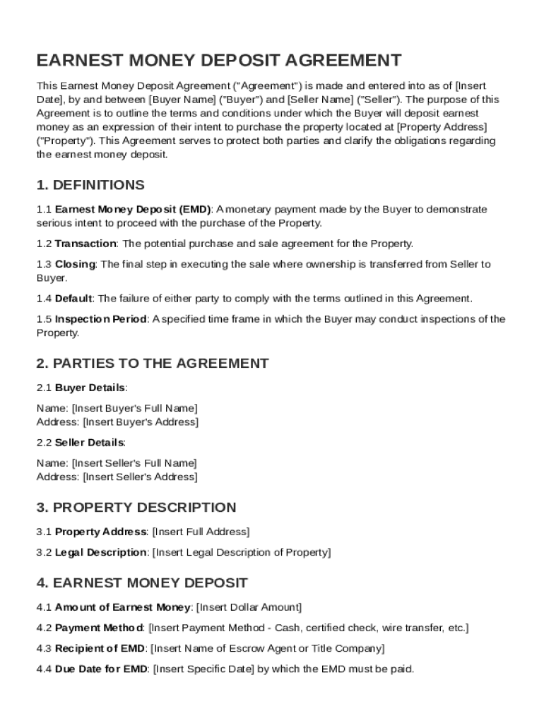 Earnest Money Deposit Agreement Template: Fill out sign online DocHub