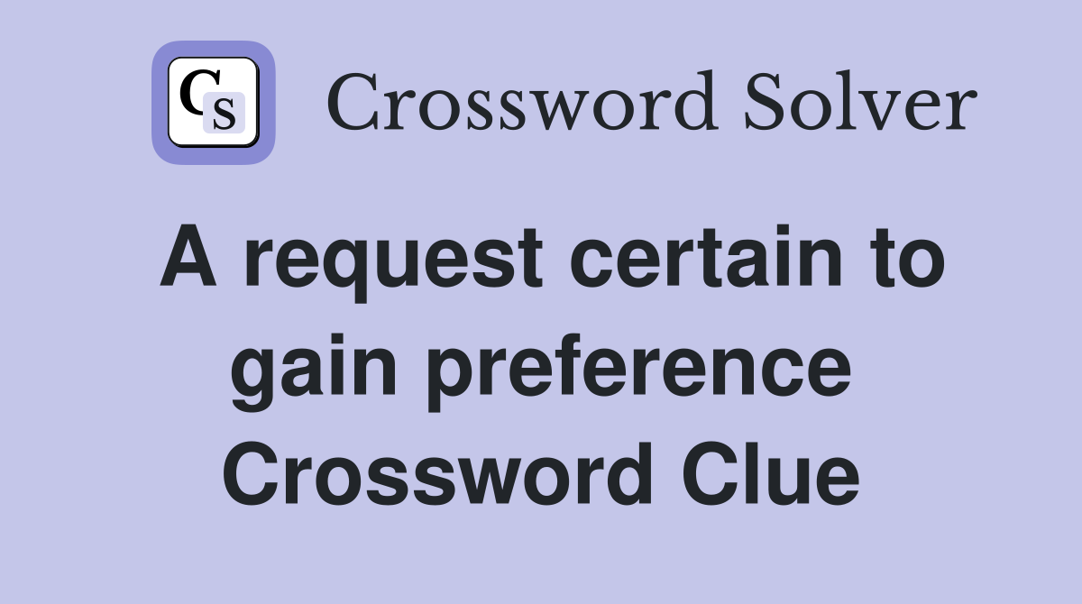 Here are some of the images for Earnestly Request Crossword Clue that we found in our website database.