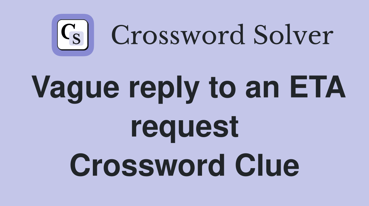 Vague reply to an ETA request Crossword Clue Answers Crossword Solver