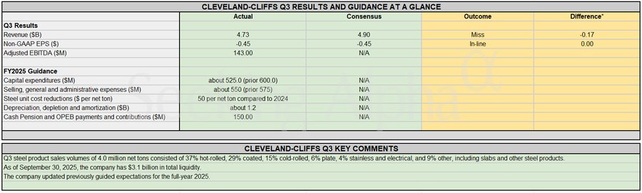 Earnings Snapshot:Cleveland Cliffs misses top line estimates lowers FY