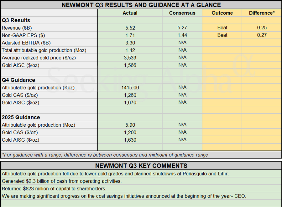 Earnings Snapshot: Newmont beat Q3 earnings revenue estimates