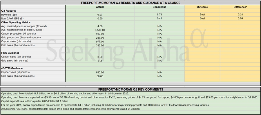 Earnings Snapshot: Freeport McMoRan tops Q3 estimates initiates Q4 and