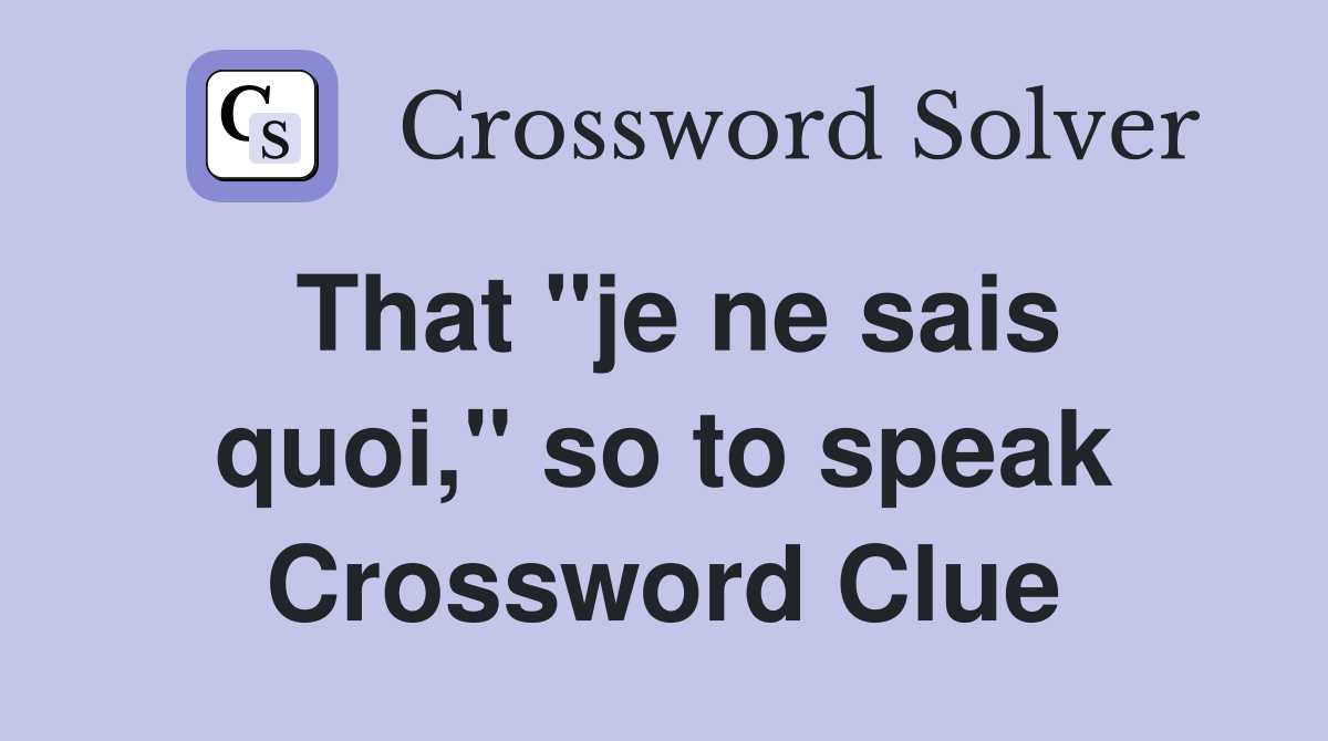 That quot je ne sais quoi quot so to speak Crossword Clue Answers