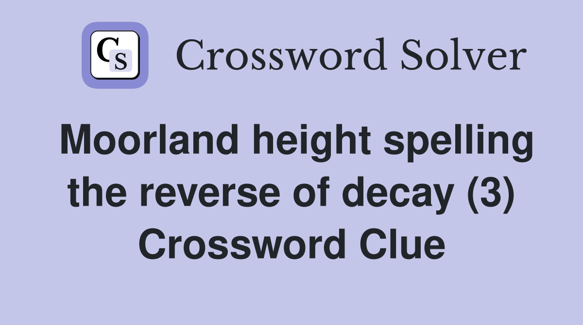 Moorland height spelling the reverse of decay (3) Crossword Clue