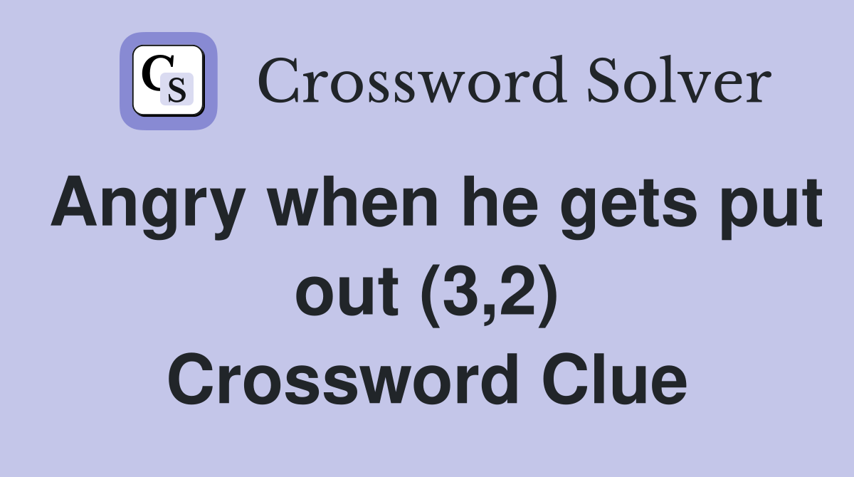 Angry when he gets put out (3 2) Crossword Clue Answers Crossword