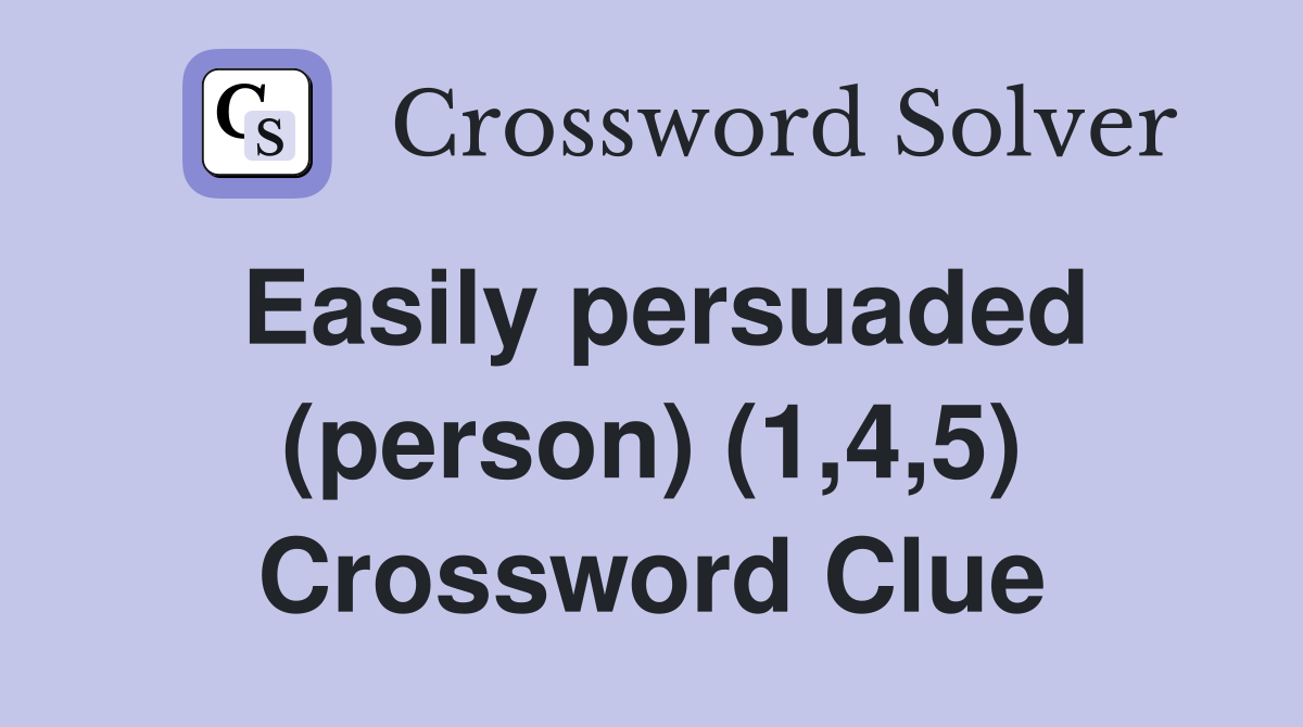 Easily persuaded (person) (1 4 5) Crossword Clue Answers Crossword