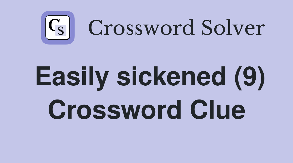Easily sickened (9) Crossword Clue Answers Crossword Solver