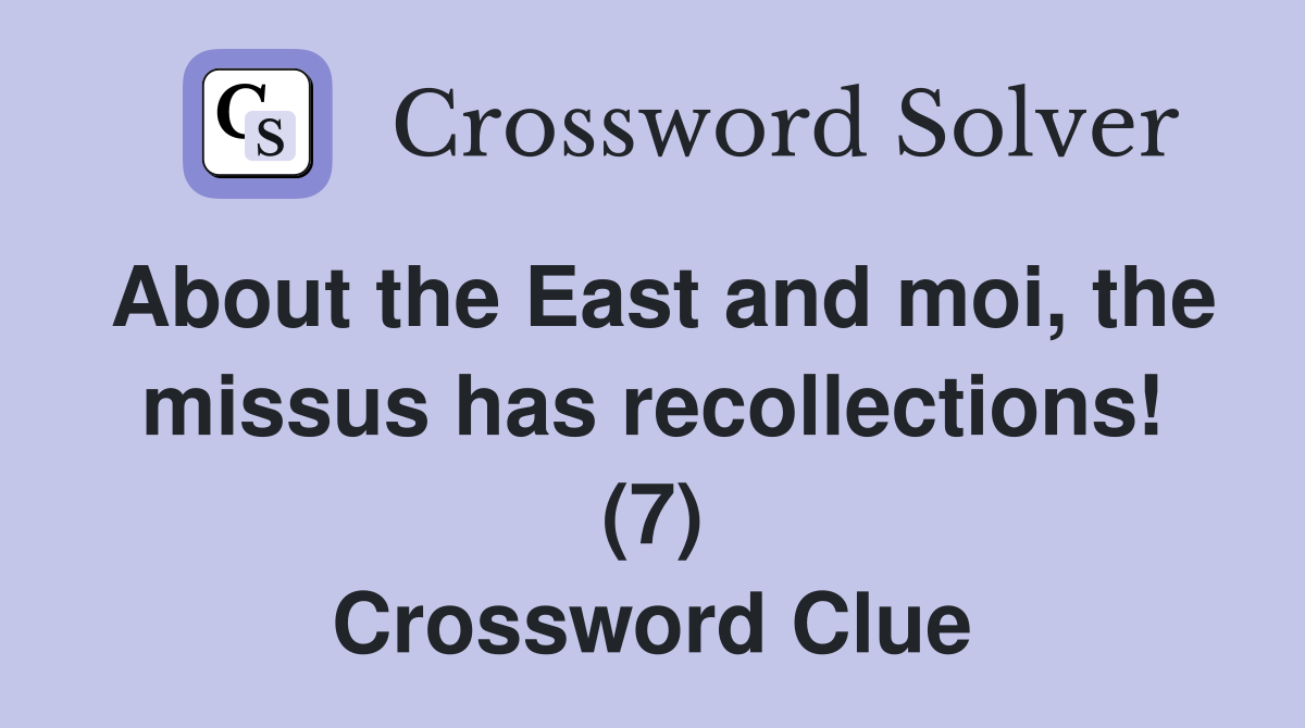 About the East and moi the missus has recollections (7) Crossword