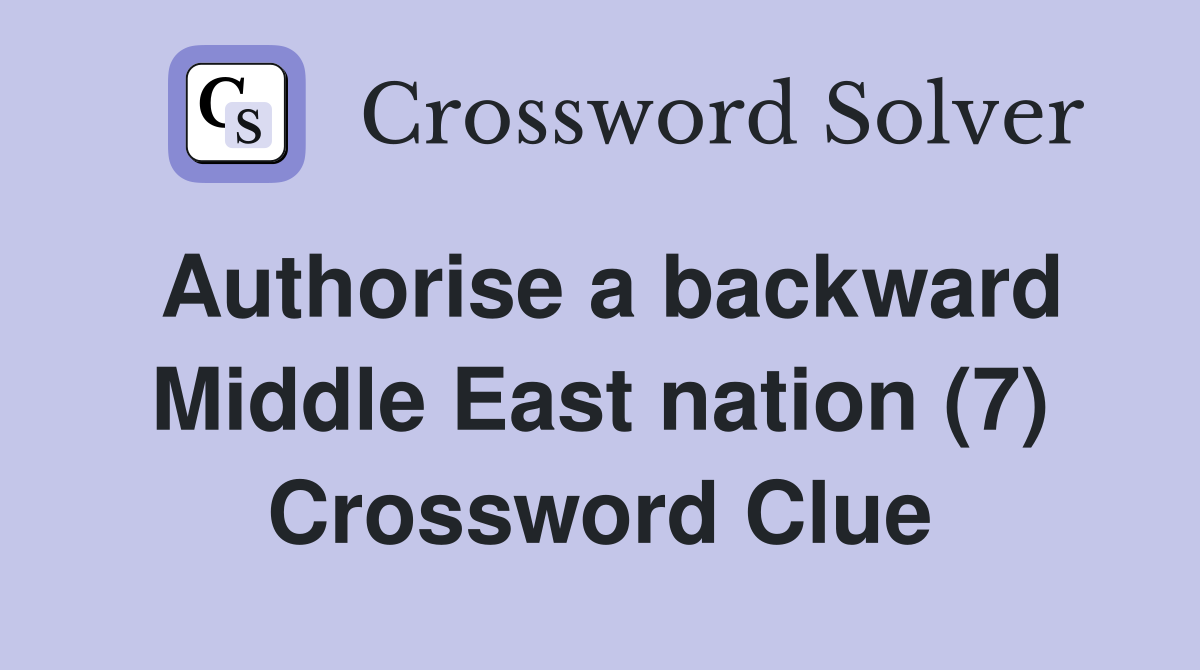 Authorise a backward Middle East nation (7) Crossword Clue Answers