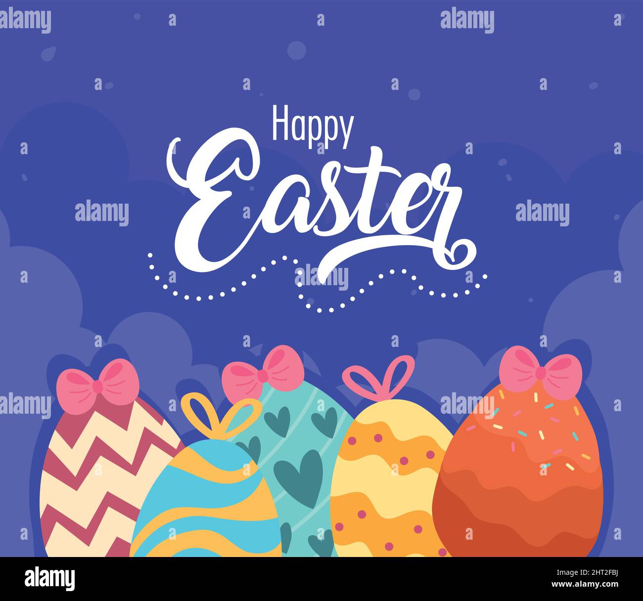 happy easter lettering with eggs Stock Vector Image Art Alamy
