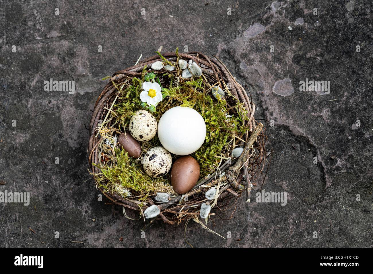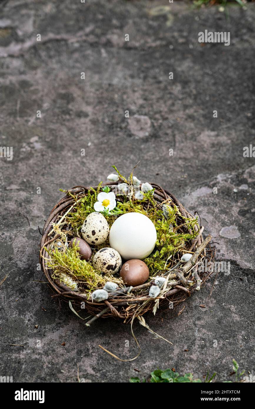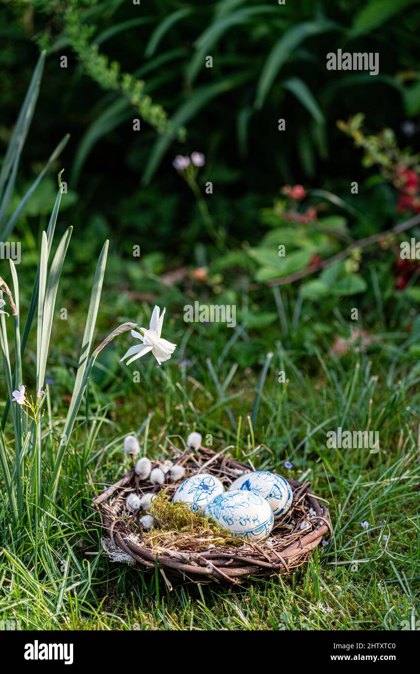 Easter Easter nest in the spring bed Stock Photo Alamy