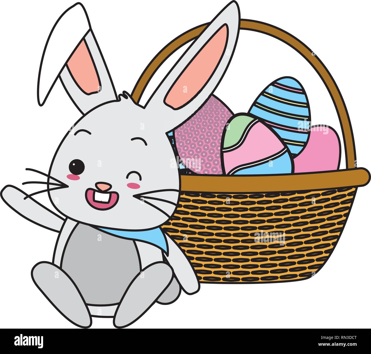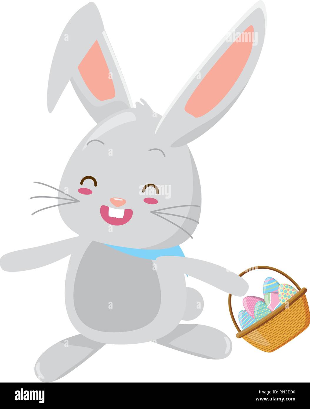 Cute Easter Bunny with Flowers and Eggs Graphic by Design Vibe