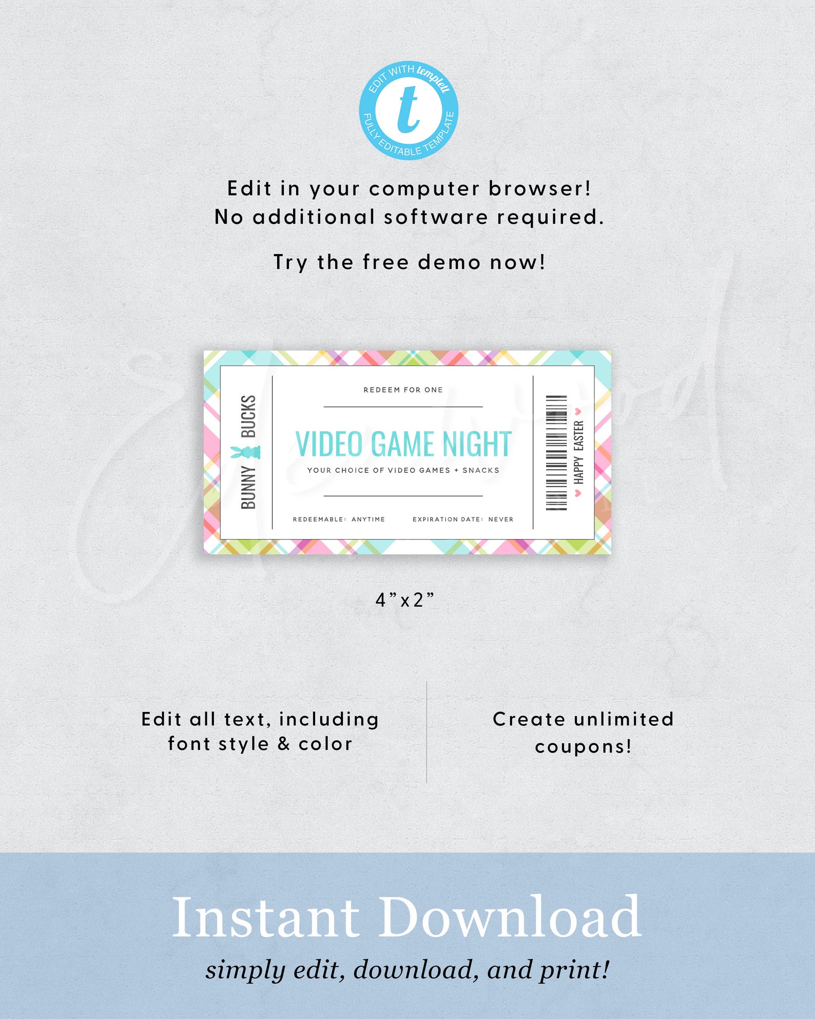 Easter Coupon Easter Coupons Printable Easter Coupons Editable
