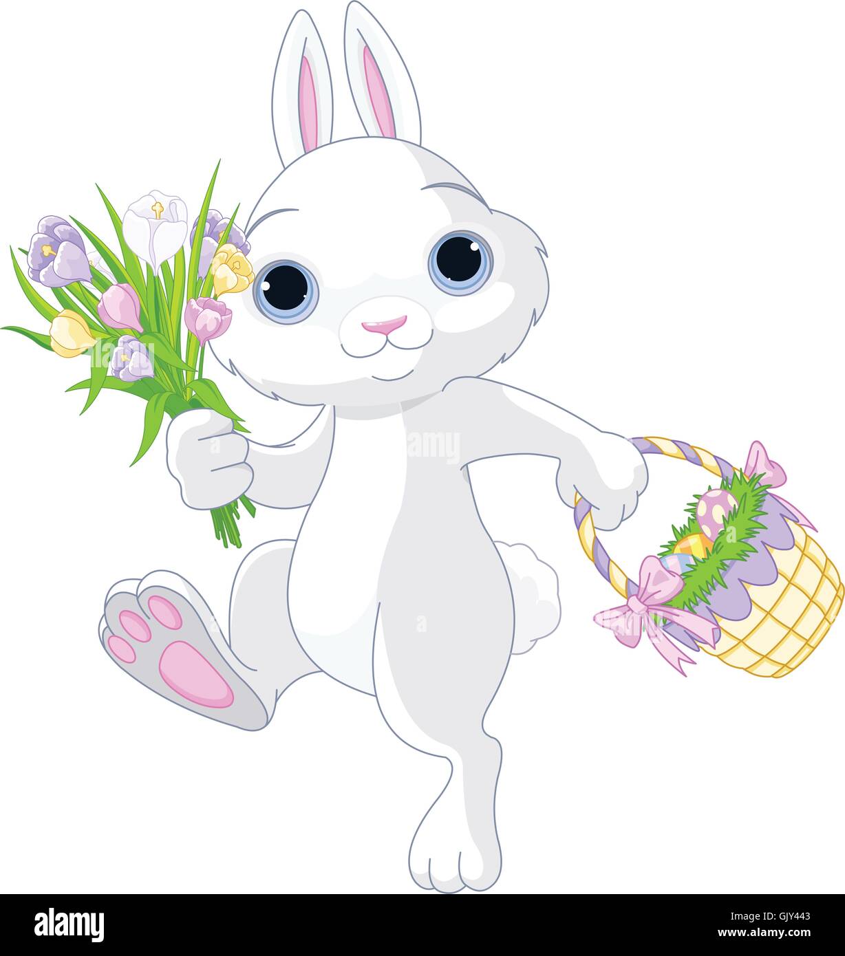 Cute Easter Bunny with Flowers and Eggs Graphic by Design Vibe