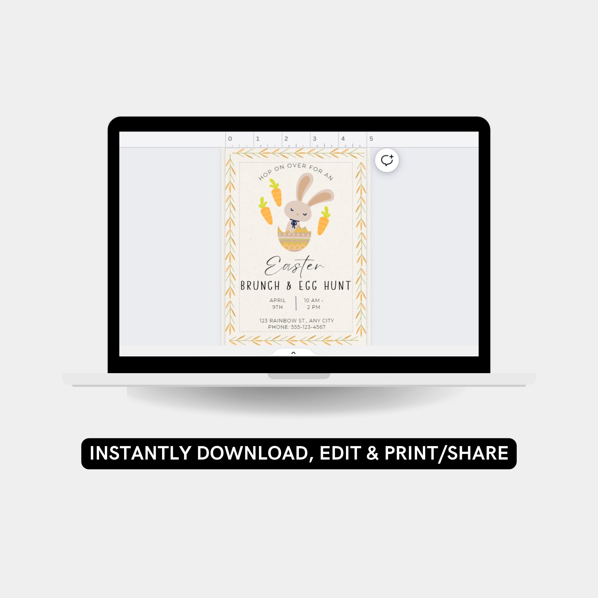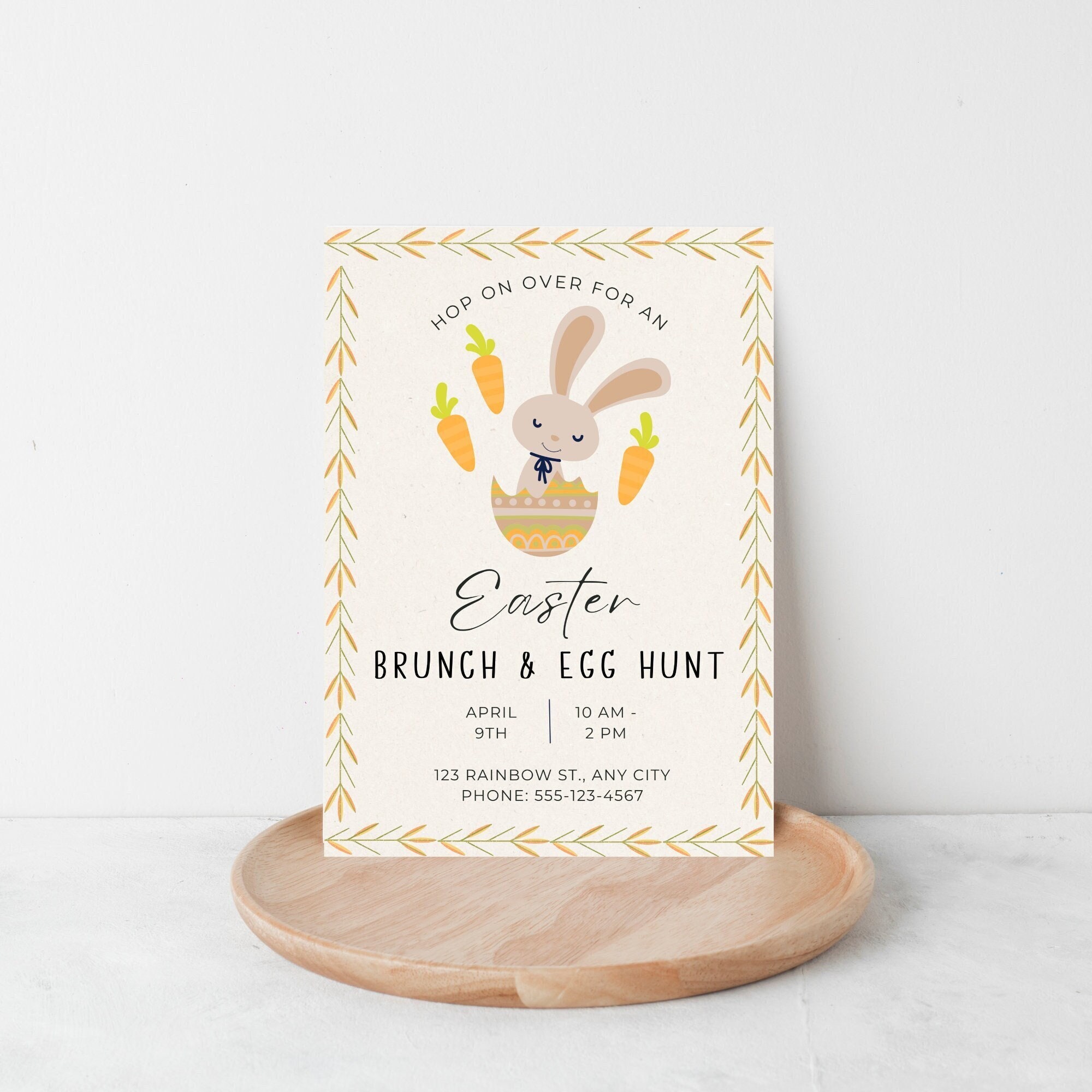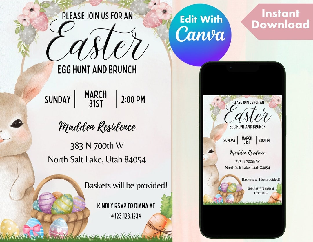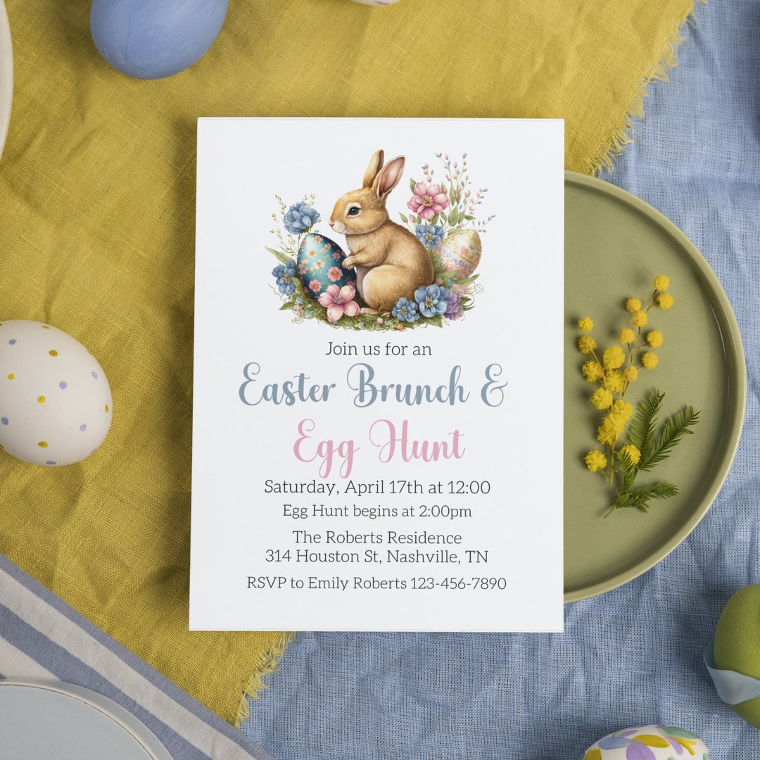 Easter Egg Hunt Brunch Invitation Editable Template Spring Easter Bun
