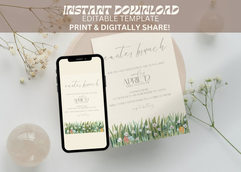 Editable Easter Egg Hunt Invite Spring Easter Brunch Invitation Template