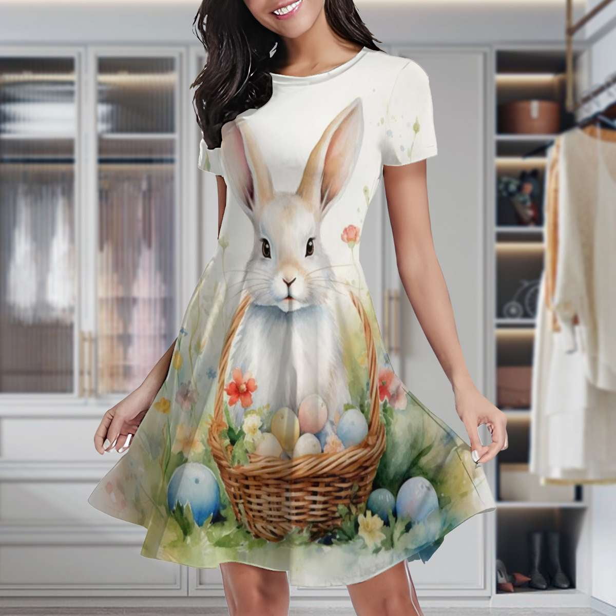 Rabbit Easter Bunny Women #39 s Classic Swing Skater Dress Casual Work