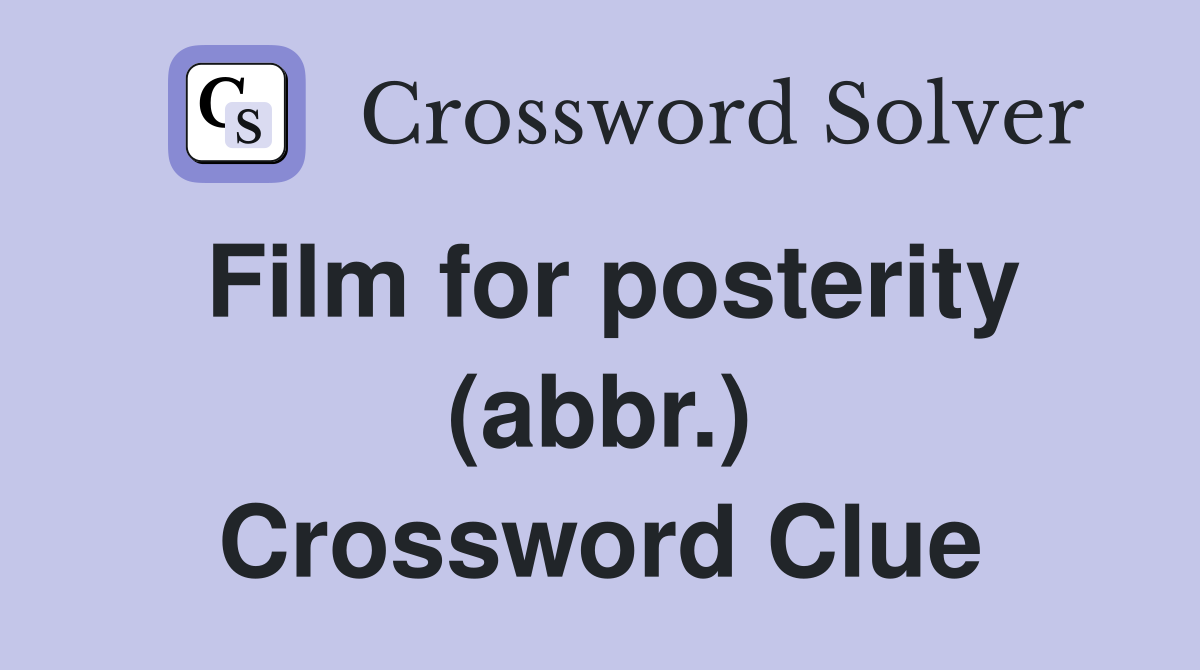 Film for posterity (abbr ) Crossword Clue Answers Crossword Solver
