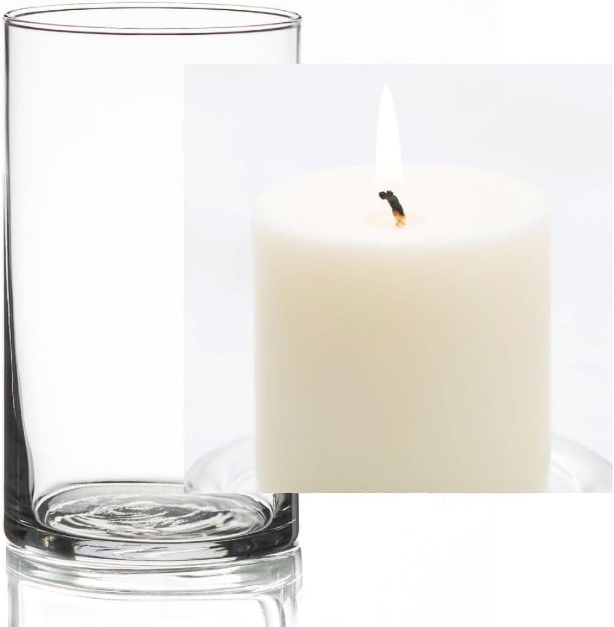 12 Eastland Glass Cylinder Vases 6 quot and 12 Richland Pillar Candles 3