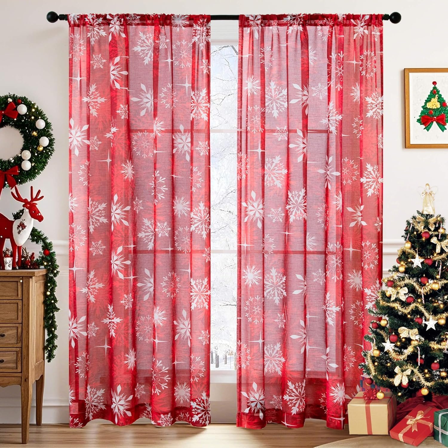 Amazon com: Sheer Christmas Curtains 2 Panels for Living Room