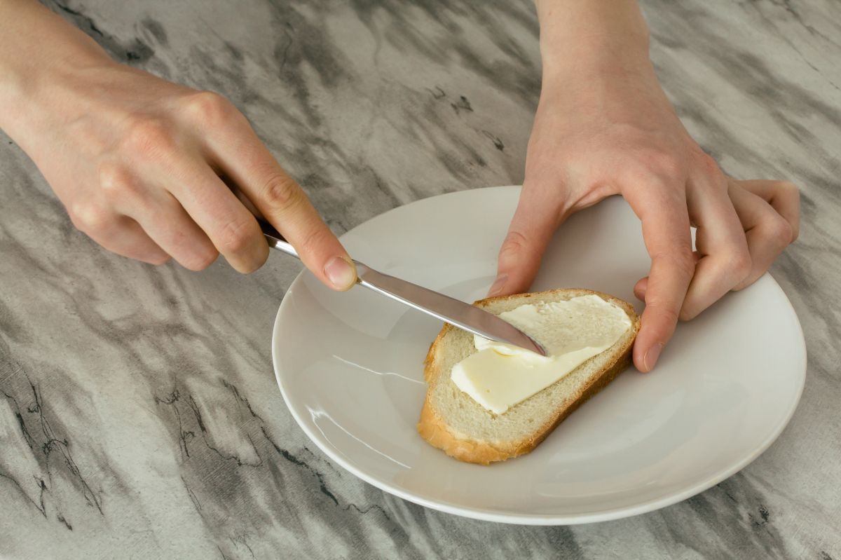 Spread Butter on Bread Soft Butter Spreading on Slice of Sourdough