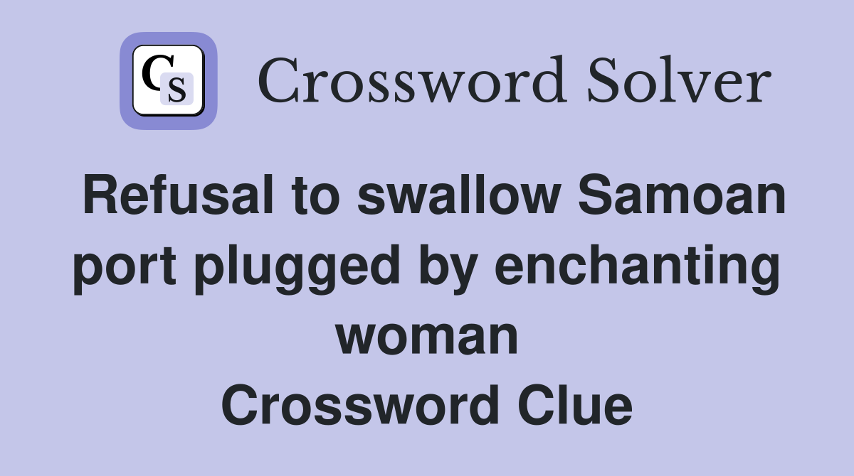 Refusal to swallow Samoan port plugged by enchanting woman Crossword