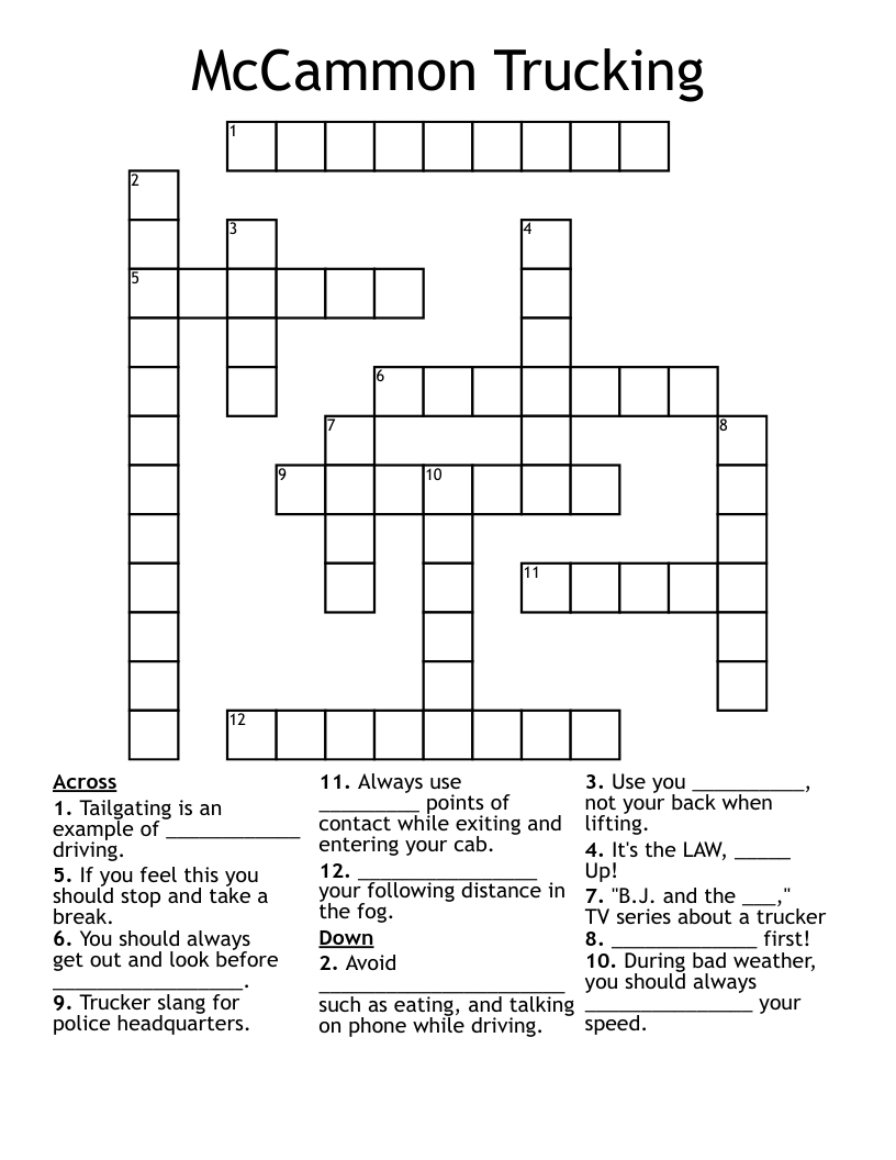 Here are some of the images for Easy Trucking Distance Crossword that we found in our website database.
