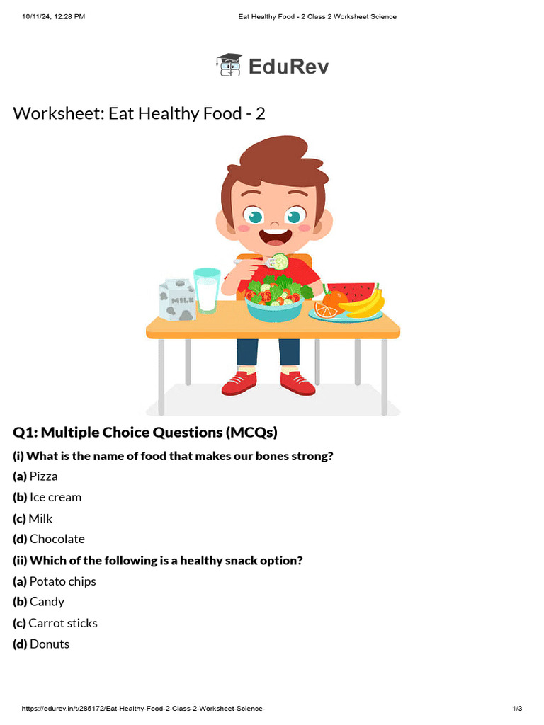 Eat Healthy Food 2 Class 2 Worksheet Science PDF