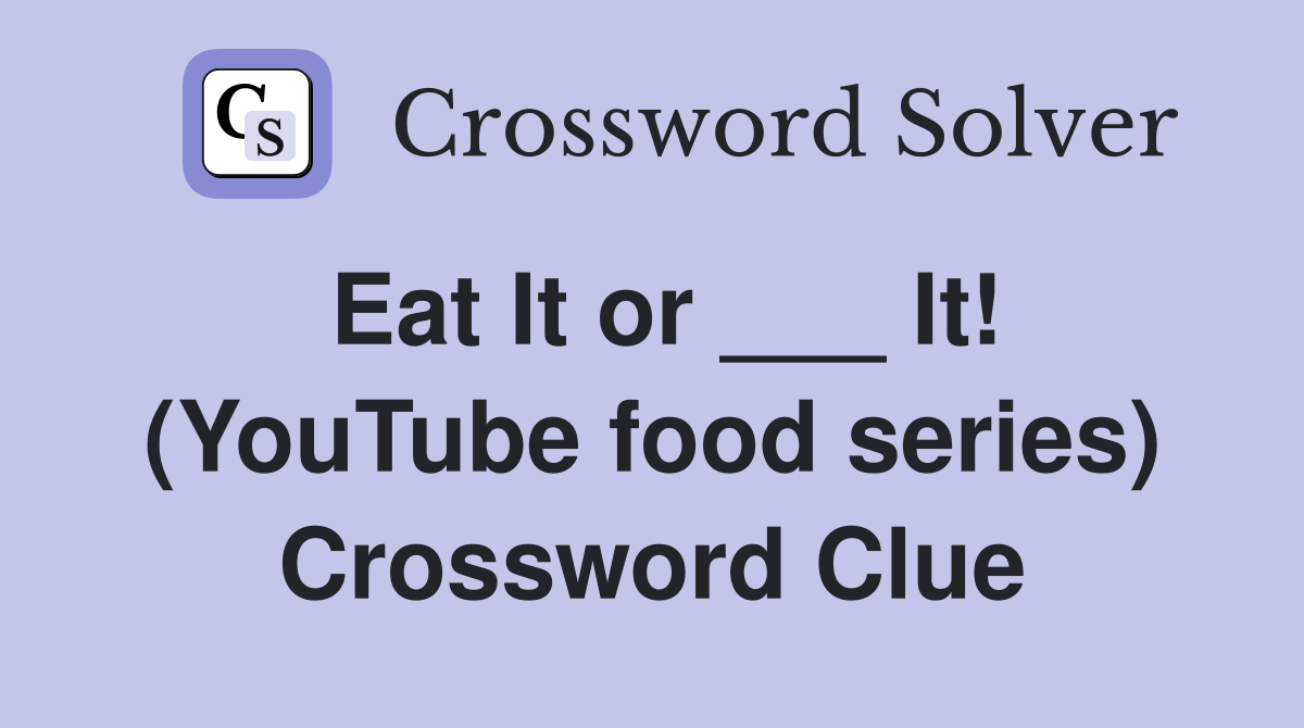 Eat It or It (YouTube food series) Crossword Clue Answers