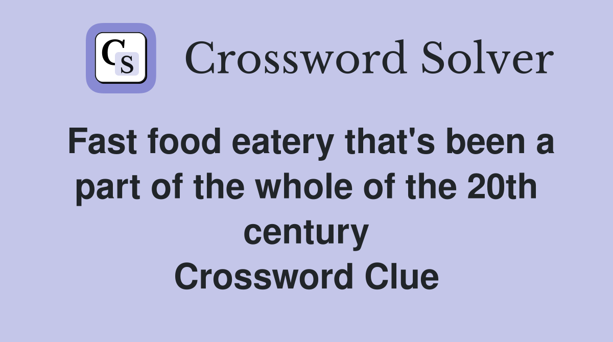Fast food eatery that #39 s been a part of the whole of the 20th century
