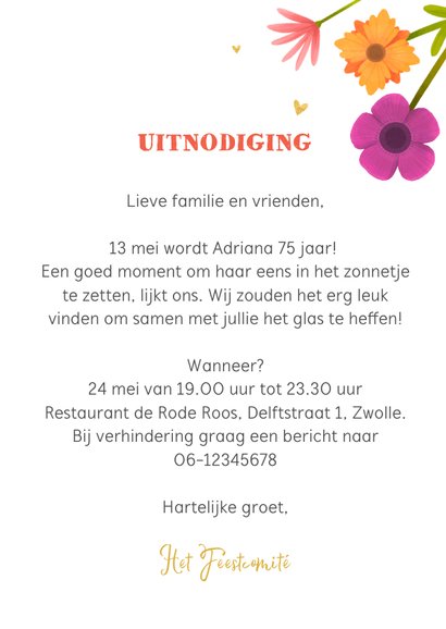 Uitnodiging verjaardagsfeest bloemen hartjes Kaartje2go