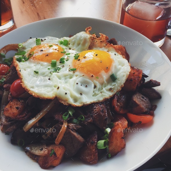 Healthy breakfast colorful hash eggs potato trendy eatery restaurant