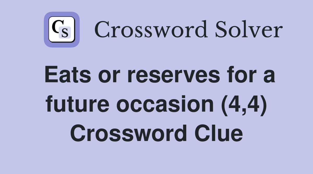 Eats or reserves for a future occasion (4 4) Crossword Clue Answers