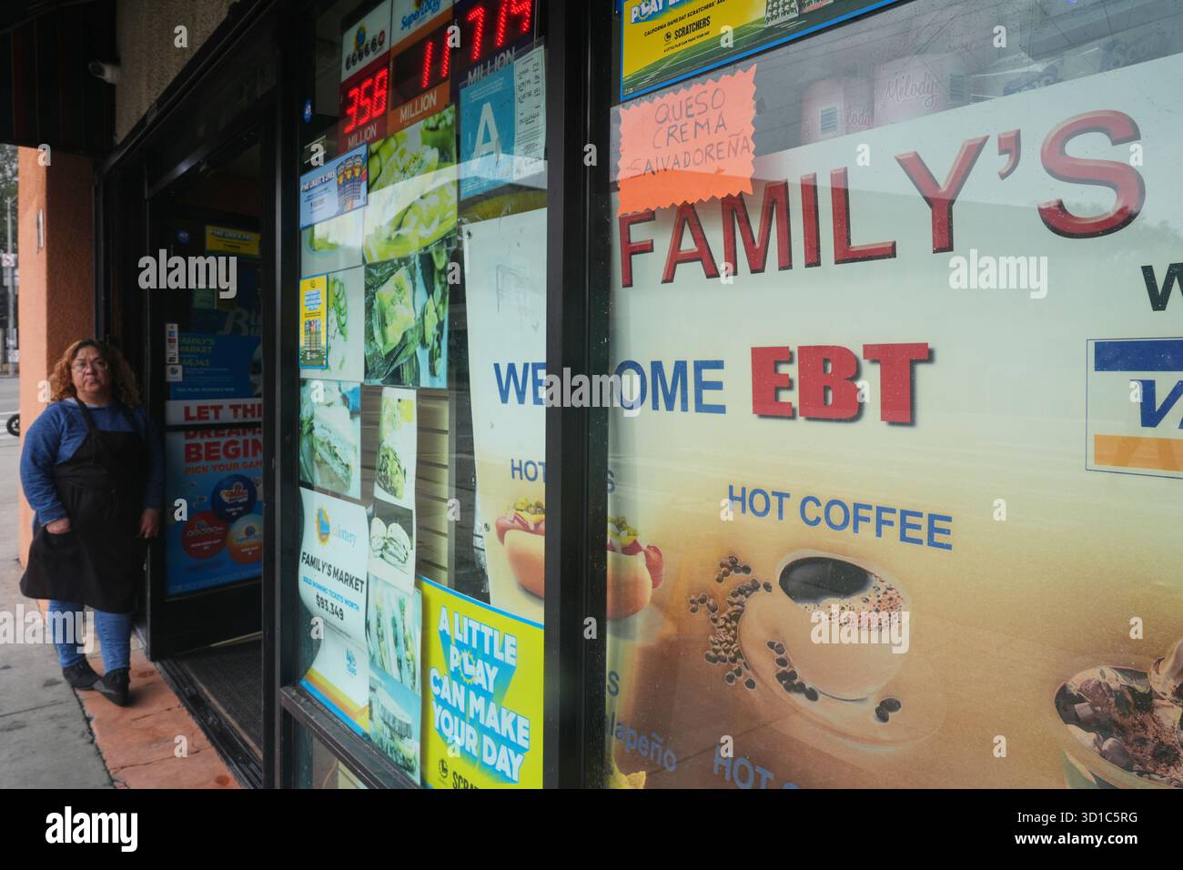 A sign indicates EBT cards are accepted at a market on Monday Oct 27
