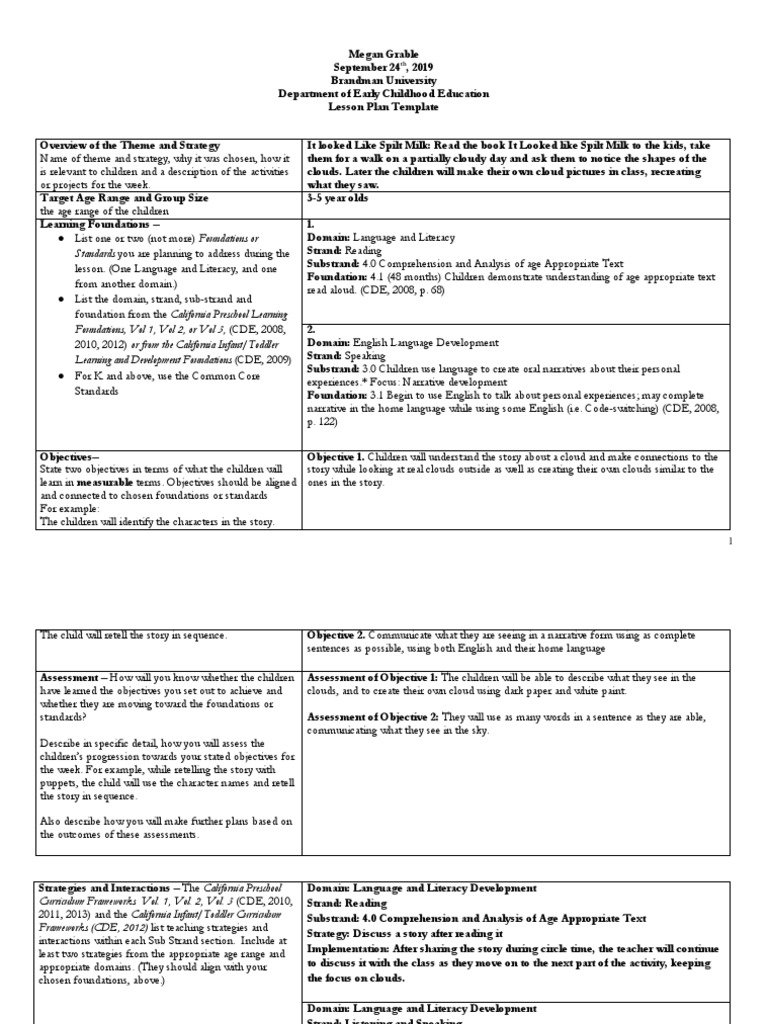 Brandman Ece Lesson Plan Template Rev 5 19 2 PDF Narrative Preschool